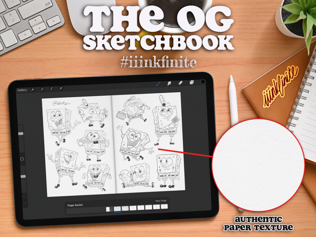 The OG Sketchbook series features Plain White 300gsm textured pages in the form of Ultra High-Definition embedded PNGs. (Other textures and layouts are available).